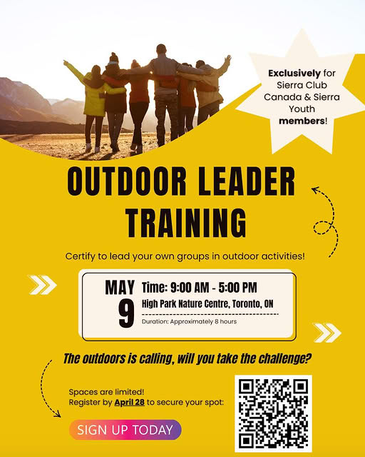 Sierra Club Canada is hosting a free, 1-day Outdoor Leader Training program in Toronto on Saturday, May 9th, 2026.