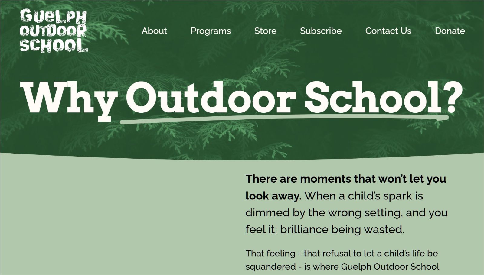 Guelph Outdoor School was born in the fall of 2012 as a solution to a growing constellation of unmistakable needs.